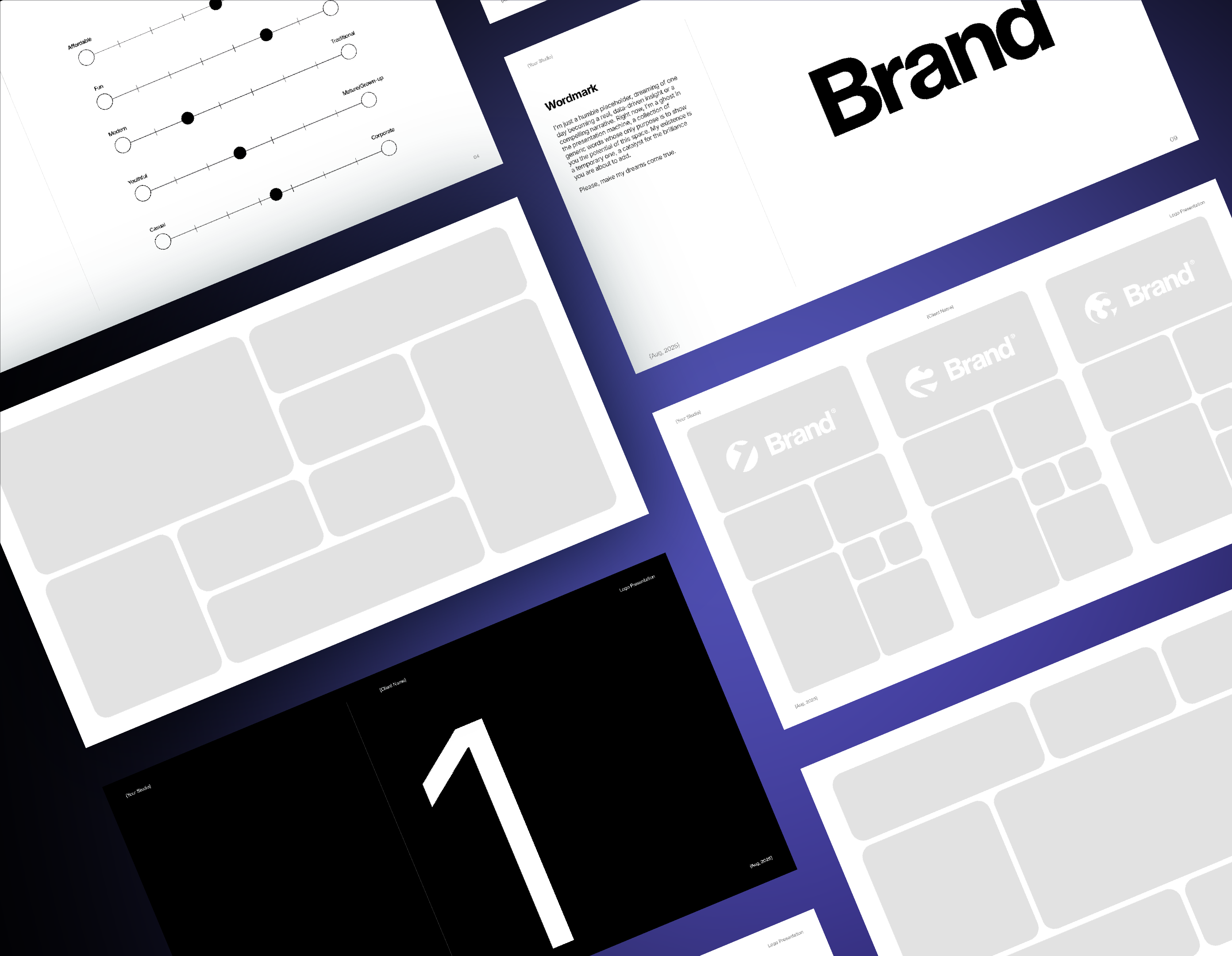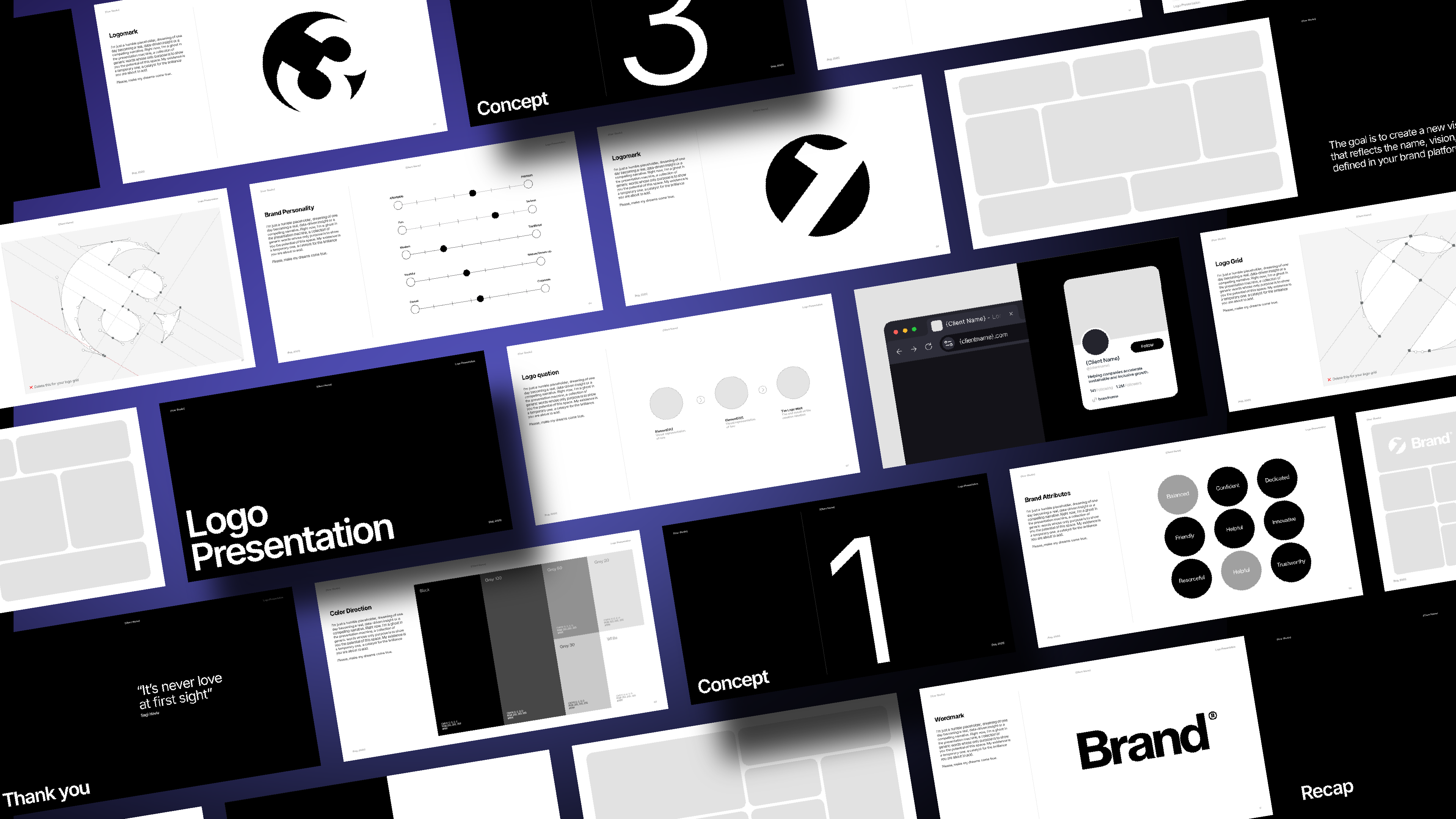 Build more consistent logos using pre-made layouts for every style — from geometric marks to stacked lockups.
