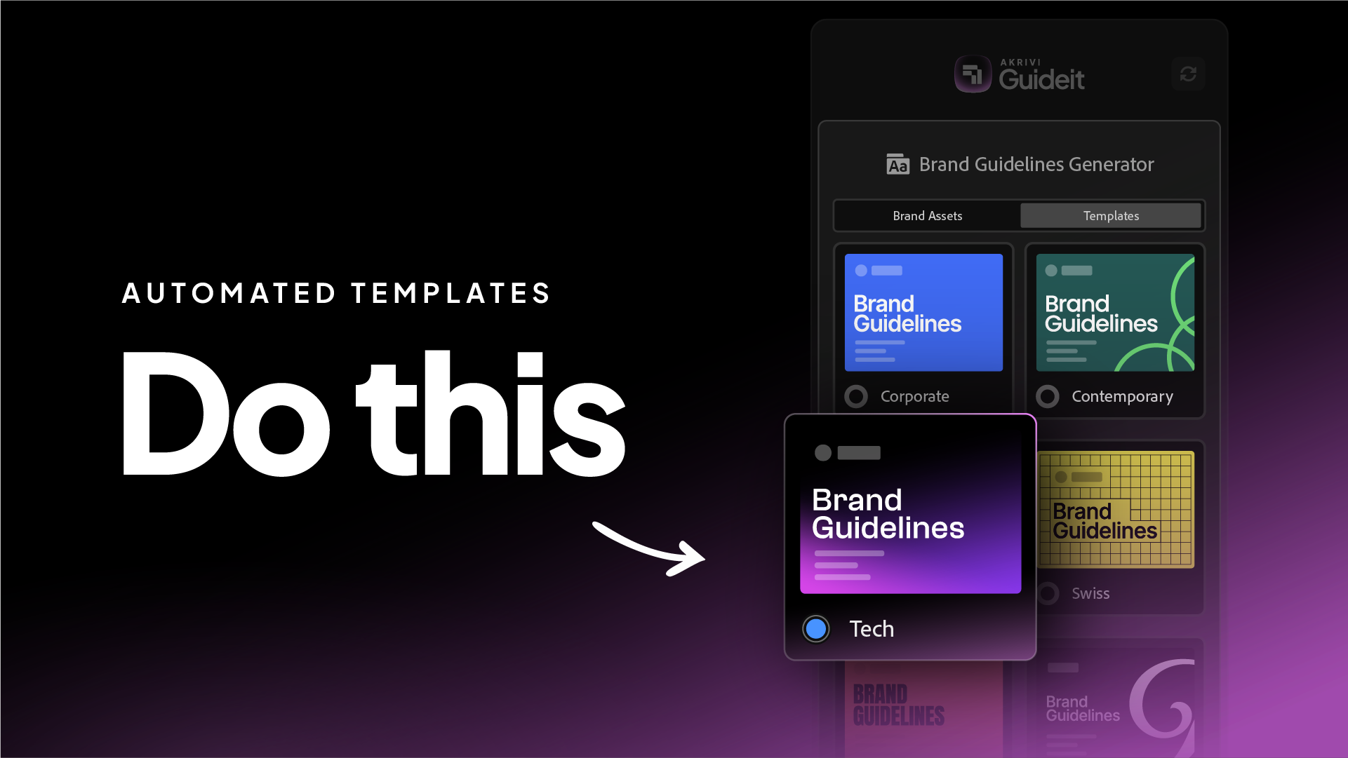Automation generates brand guidelines in seconds, but choosing the right template ensures they look designed, not just generated.