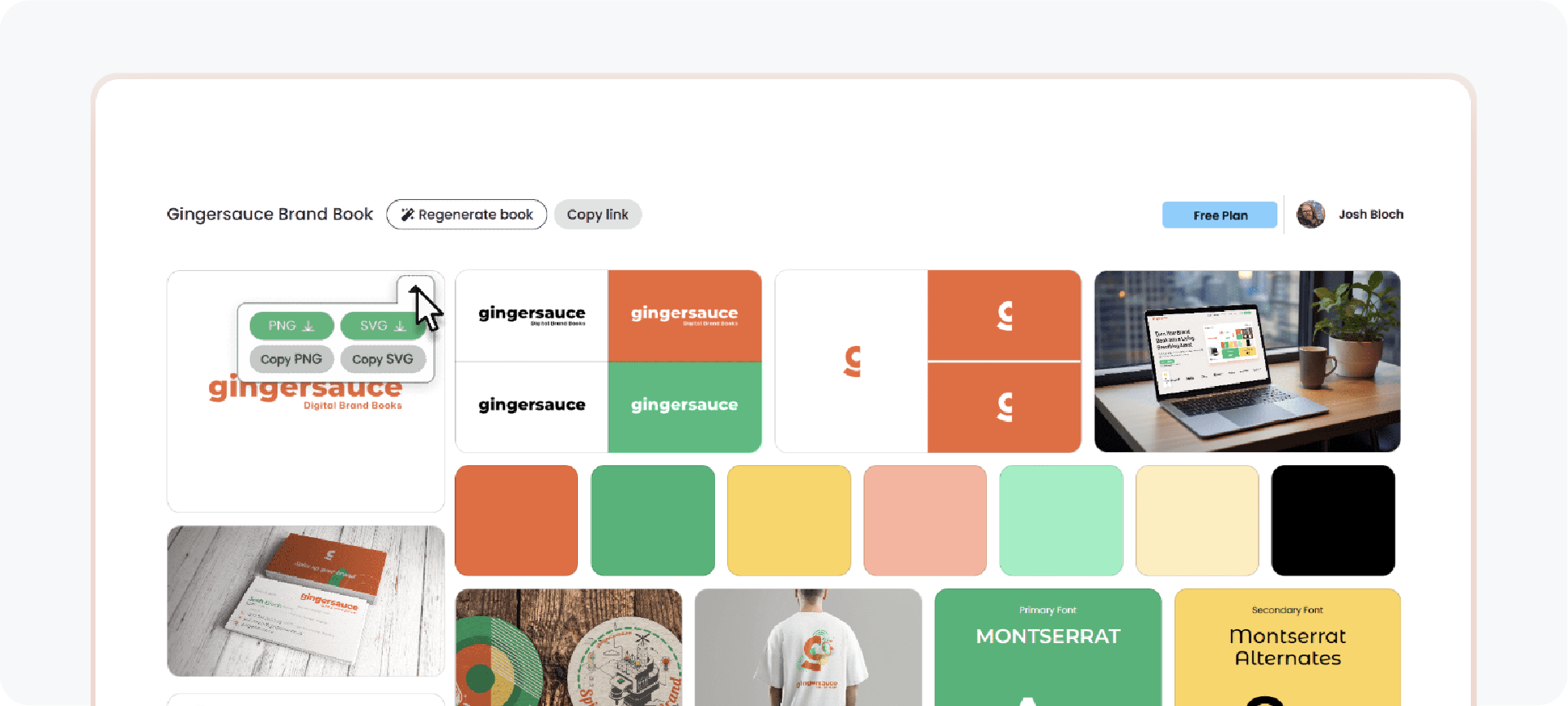 Gingersauce positions itself as a professional tool to create brand books. It uses wizards to help you upload logos and pick fonts.