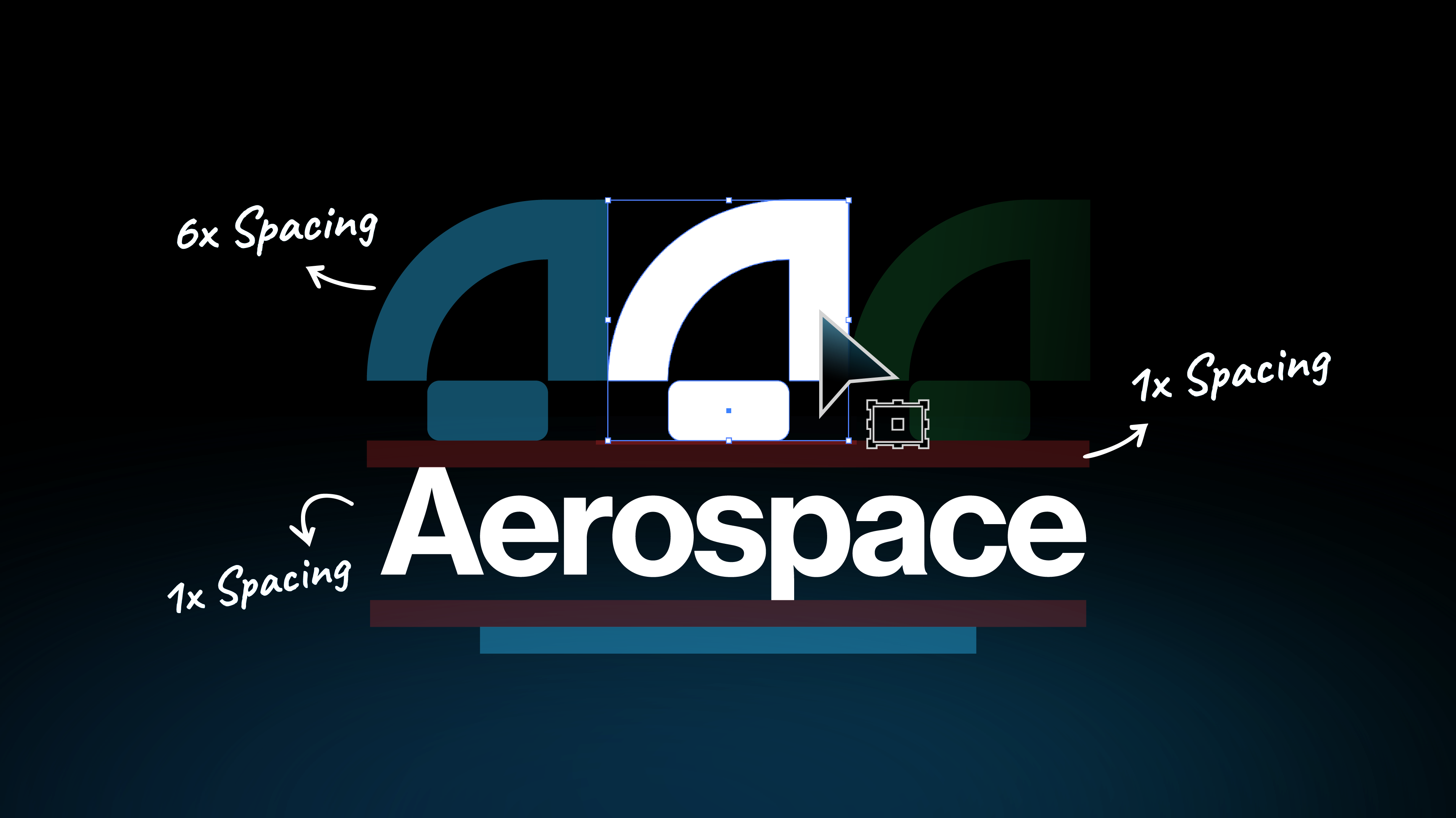 - Define Wordmark Width: I duplicate the logomark to the right and left, snapping them edge-to-edge with no space. These act as temporary guides.