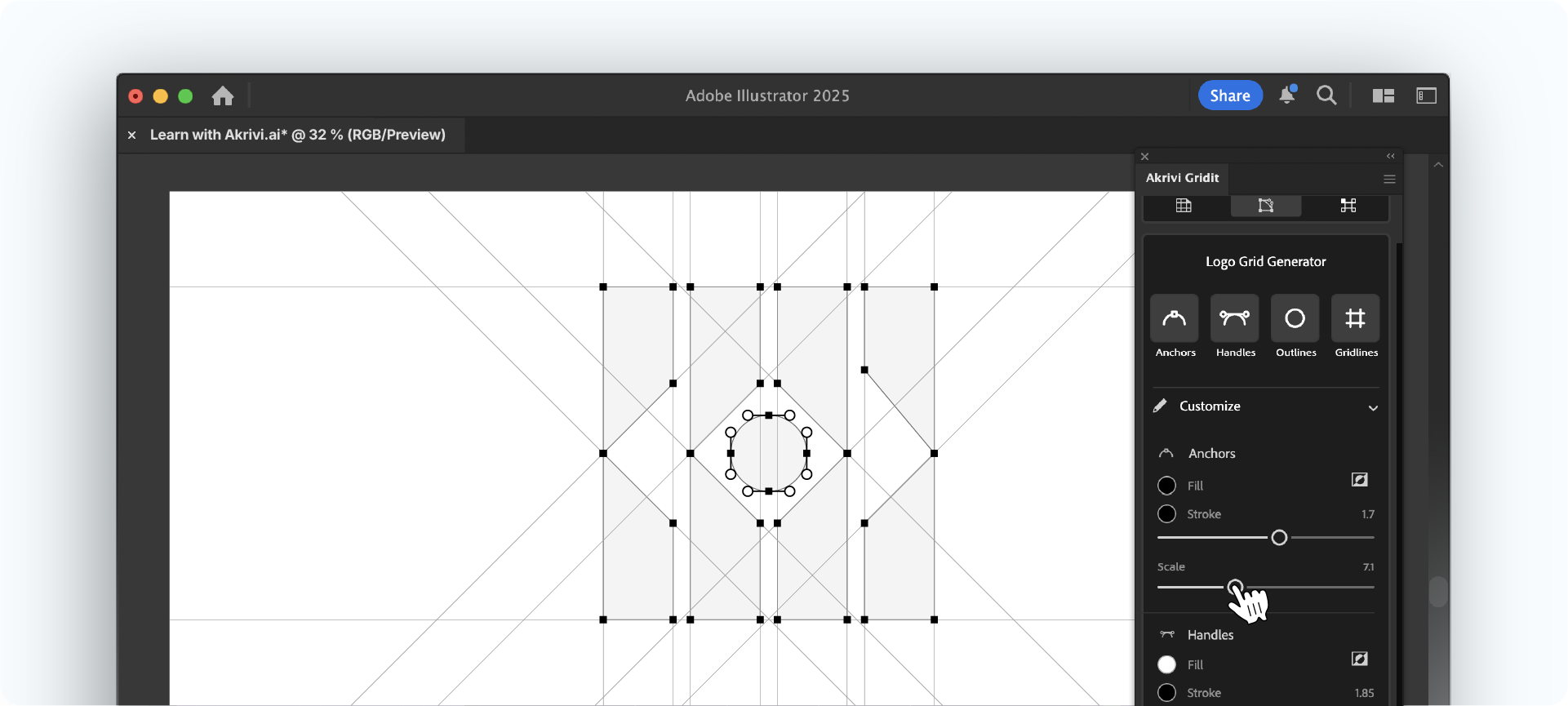 Use the Stroke slider to make gridlines thin and subtle. This keeps the focus on the logo, not the lines. - Adjust Anchors & Handles